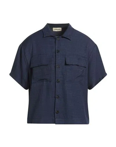 Man Shirt Navy Size L Cotton, Viscose, Polyester In Blue