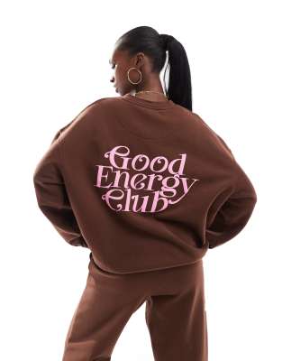 Good Energy Club Bubble Back Print Sweatshirt In Brown - Part Of A Set