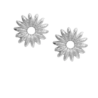 Women's Silver Sunburst Statement Stud Earrings In Metallic