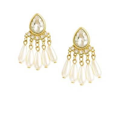 Women's Gold-tone Crystal & Pearl Fringe Drop Earrings