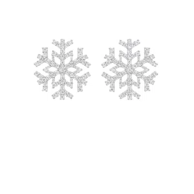 Women's Silver Snowflake Crystal Stud Earrings In White