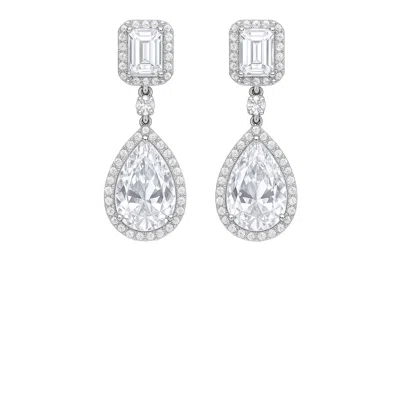 Women's White / Silver Emerald-cut & Pear Halo Drop Earrings