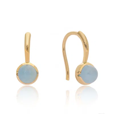 Women's Gold Aquamarine Hook Round Sterling Silver Earrings March Birthstone