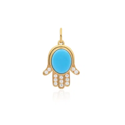 Women's Yellow / Orange / Gold Hamsa Turquoise Charm Pendant In Silver
