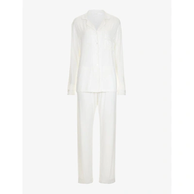 Womens Contrast-piping Straight-leg Stretch-woven Pyjama Set In Vanilla/beige Piping
