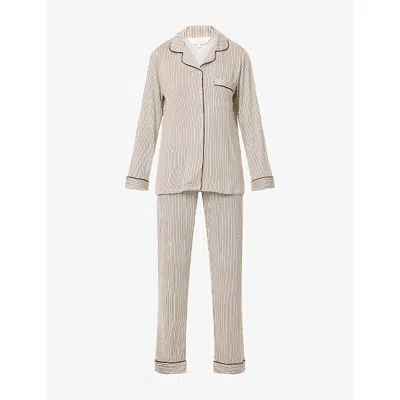 Womens Brown Stripe Satin Striped Stretch-modal Pyjamas