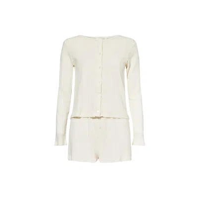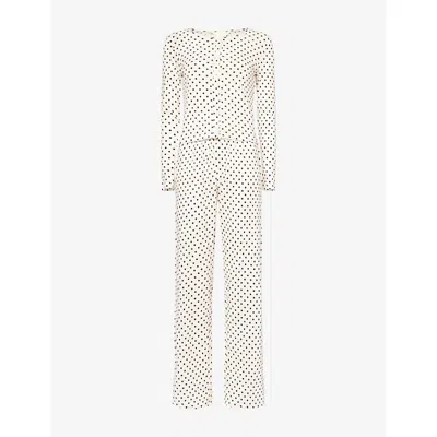 Womens Pointelle Open-work Cotton-knit Pyjama Set Buttermilk