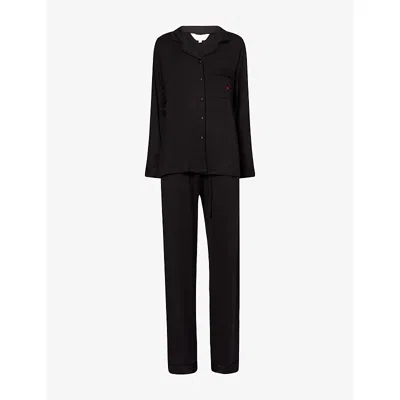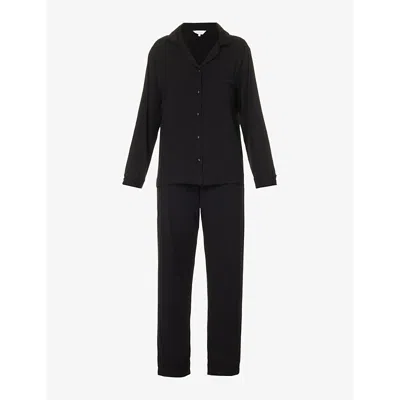 Womens Stretch Long-sleeve Modal-jersey Pyjama Set In Black