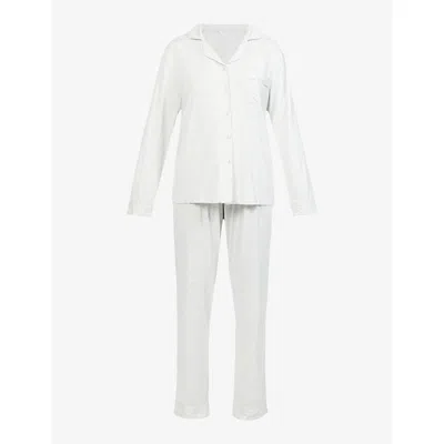 Womens Stretch Long-sleeve Modal-jersey Pyjama Set Blue/ Cream Rose In White