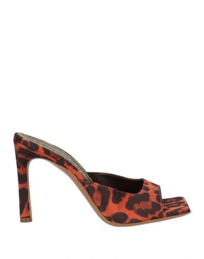 Woman Sandals Rust Size 7 Textile Fibers In Red