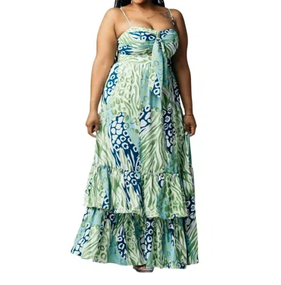 Camille Chiffon O Ring Detail Floral Dress In Green In Multi