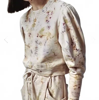 Pleat Sleeve Crew Neck Sweatshirt In Botanical Dye In Multi