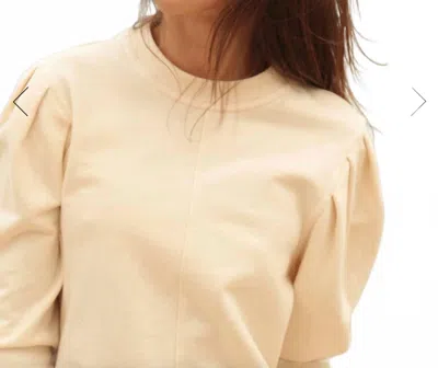 Pleat Sleeve Crewneck Top In Beige In Nude