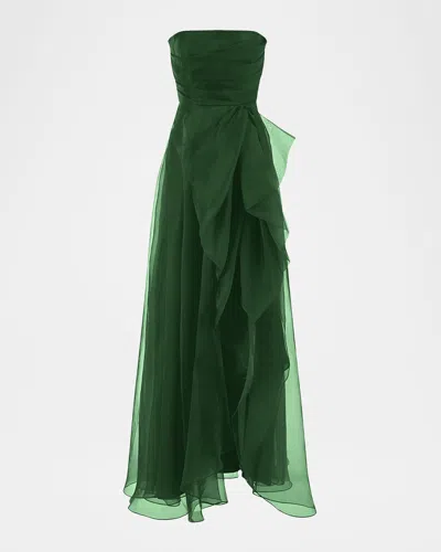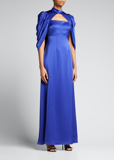 Carrie Draped Cape-sleeve Gown In Clematis Blue