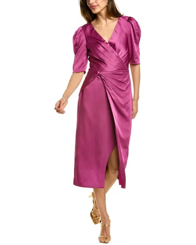 Mirielle One-shoulder Satin Midi Dress In Pink