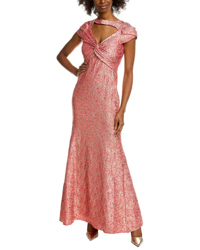 Brocade Ruffle Gown In Dusty Rose In Multi