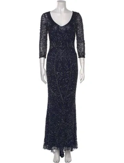Pre-owned $945 Women's Blue Brigitta Beaded Capelet Cape Gown Dress Size 4