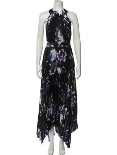 Pre-owned Floral Print Long Dress In Black