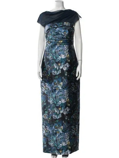 Pre-owned Floral Print Long Dress W/ Tags In Blue