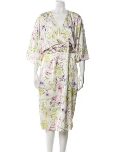 Pre-owned Floral Print Midi Length Dress In Green