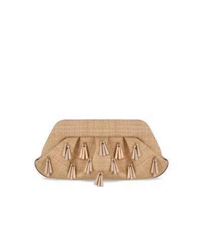 Emera Paper Fringes Macadamia Clutch Bag In Sand