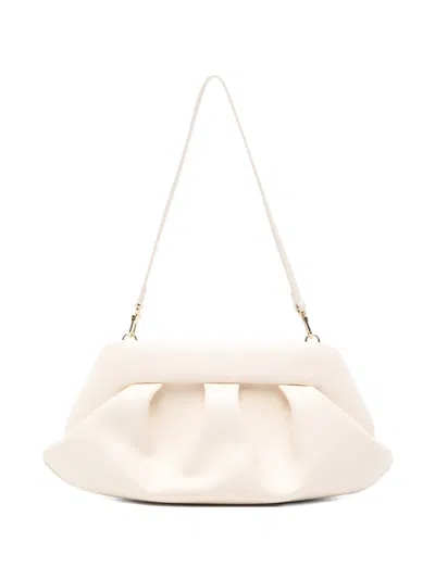 Medium Bios Ruched-detail Clutch Bag In Neutral