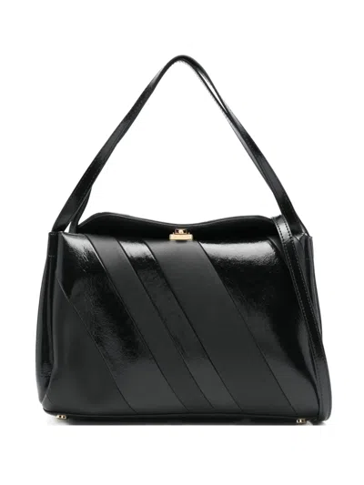 Eudora Diagonal-stripe Shoulder Bag In Black