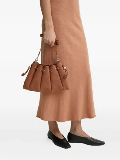 Pleated Drawstring Shoulder Bag In Brown