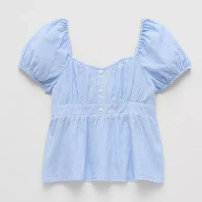 Little & Big Kid Girls Square Neck Short Sleeve Blouse In Blue