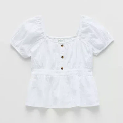 Little & Big Kid Girls Sweetheart Neck Short Sleeve Babydoll Top In White