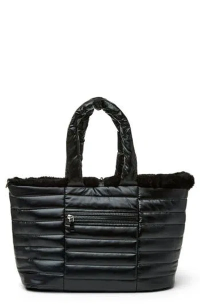 Duplex Reversible Faux Fur Trim Tote & Pouch In Black