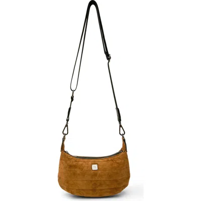 Quilted Mini Moon Crossbody Bag In Brown