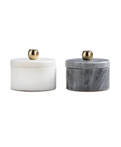 Uptown Marble Lidded Salt & Pepper Cellars In Black,white