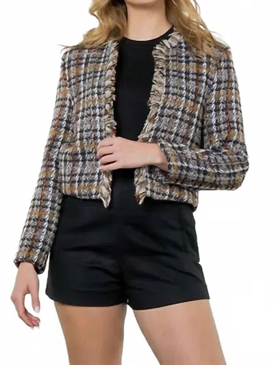 Mallory Tweed Blazer In Navy In Multi