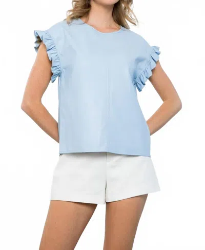 Ruffle Sleeve Textured Top In Blue