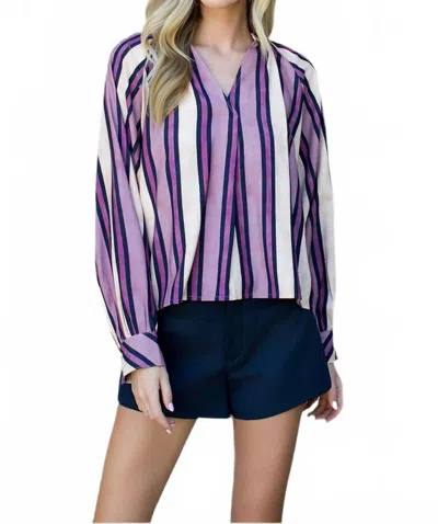 Striped Long Sleeve Blouse In Purple In Multi