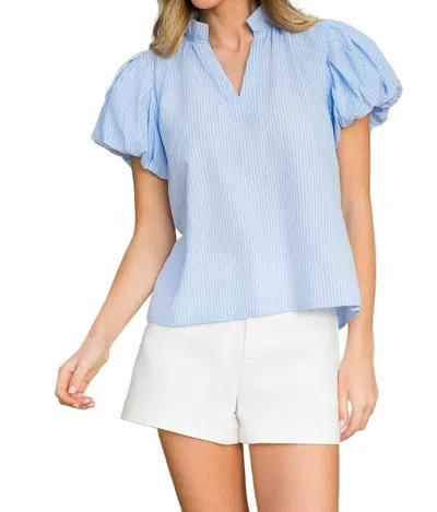 Puffed Sleeve Poplin Blouse In Baby Blue