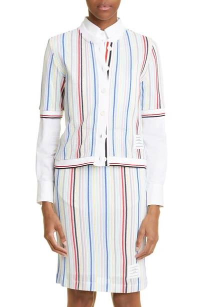 Born in Pennsylvania in 1965, Thom Browne moved to New York City in 1997, where he worked in the creative department of Club Monaco, a position he kept until launching his own label. Believing that the modern ubiquity of casual dress makes for a gap in the market and lends the wearing of suits a sort of subversive edge, Browne has become known for his re-imagining of classic tailored cuts. He debuted his womenswear collection in 2003 and introduced his first full line of women’s ready-to-wear for spring 2011. Much like his menswear, his womenswear collection takes classic styles of dresses, jackets, and trousers—often in an American palette of red, white and navy—and adds edgy details such as sequined ginghams, textured weaves, and unique prints.