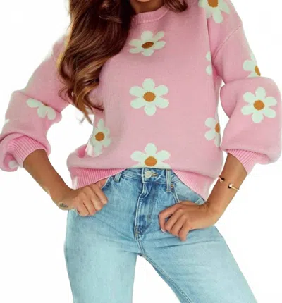 Mariah Floral Pattern Sweater In Pink