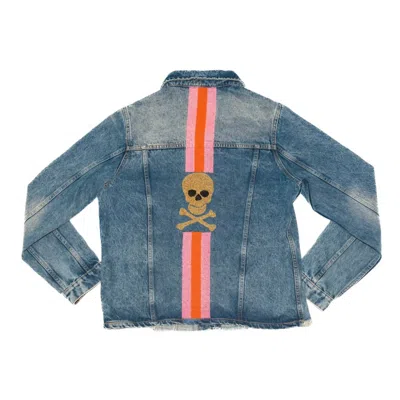 Women Bride Denim Jacket In Blue/white/silver In Multi