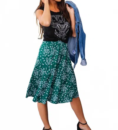 Floral A-line Knee Length Laura Skirt In Green