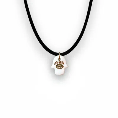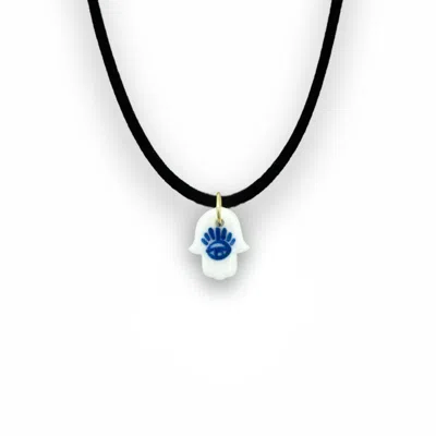 Women's Small Blue Hamsa Hand Yoga Porcelain Choker Necklace – Gold Plated In Black