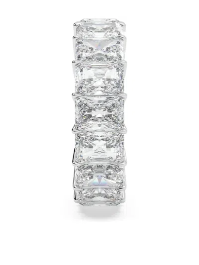 14k White Gold Emerald Lab-grown Diamond Ring In Metallic