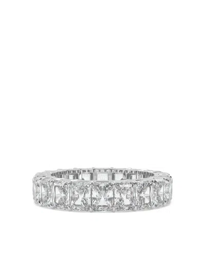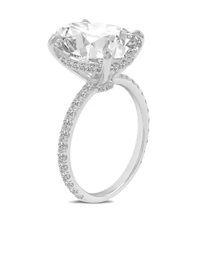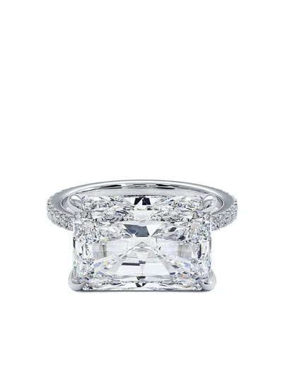 14k White Gold Emerald Lab-grown Diamond Ring In Silver