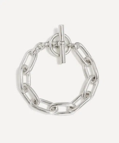 Sterling Silver Medium Oval Link Chain Bracelet In Metallic