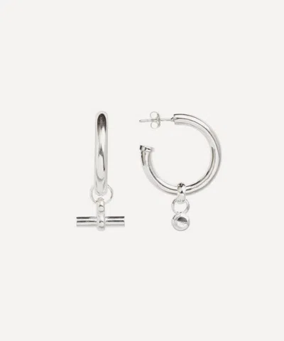 Sterling Silver Medium T-bar Drop Hoop Earrings In Metallic