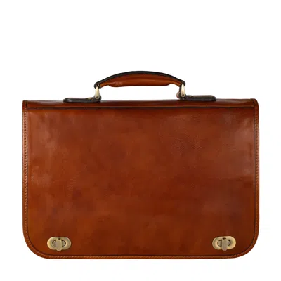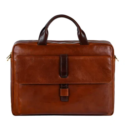 Men's Classic Design Leather Briefcase In Cognac Brown - The Magus