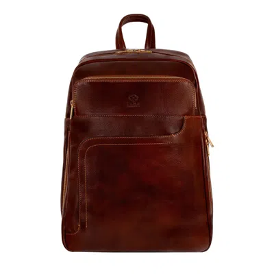 Men's Large Leather Backpack In Brown - The Divine Comedy