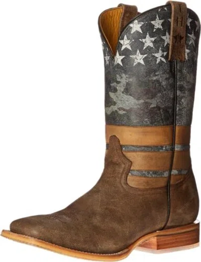 Pre-owned Freedom Patriotic Square Toe Cowboy Mens Brown Casual Boots 14-020-000