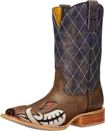 Pre-owned Mens Quantum Brown/blue Leather Cowboy Boots